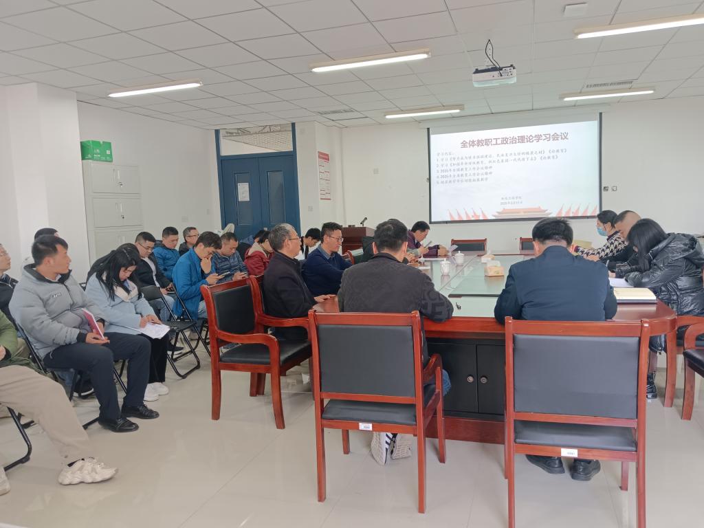 2025 年 3月 11 日下午两点半,pa娱乐游戏在公司会议室召开全体教职工政治理论学习大会,持续推进本科公司产品审核评估学习,全力推进本科公司产品审核评估工作。