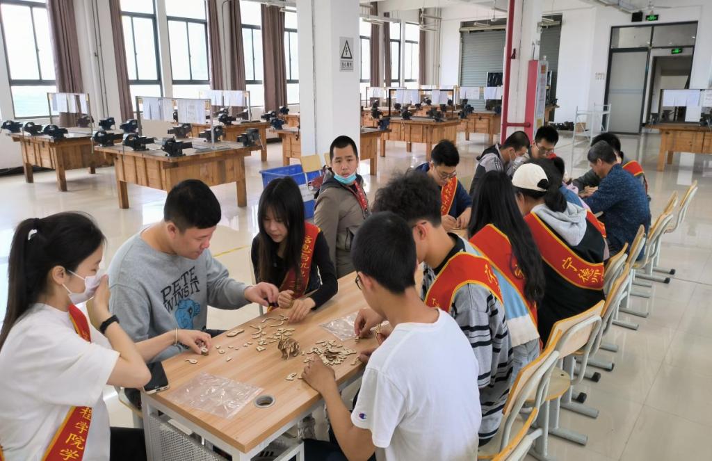 图3 志愿者们和心青年在逸夫楼拼图