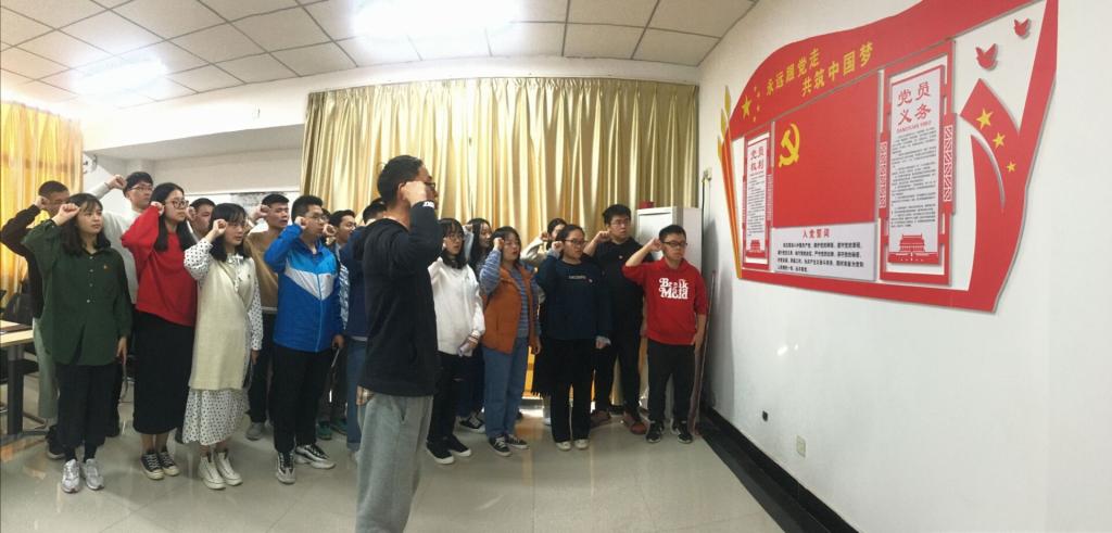 “我志愿加入中国共产党……”,面对鲜红的党旗,高举右拳,字字铿锵,重温入党誓词,牢记初心使命,彰显了信息与pa娱乐游戏员工第二党支部全体党员不忘初心、牢记使命的坚定政治信念。
