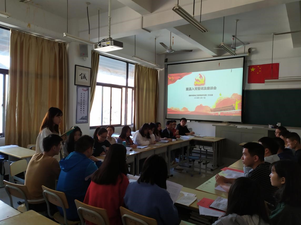 2019年12月17日,信息与pa娱乐游戏员工第二党支部在支部书记王昌雷带领下开展重温入党誓词及座谈会为主要形式“不忘初心、牢记使命”主题教育。