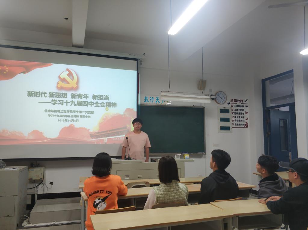 11月2日,信息与pa娱乐游戏第二党支部书记王昌雷老师要求全体员工党员带领积极分子通过学习强国、新华网、中国共产党网等渠道采用自学和小组讨论等方式学习这次会议的重要内容。11月12号下午三点在DB203召开全体党员学习十九届四中全会的讨论总结会。此次总结会以9个小组的学习成果分享为主,各组代表分别阐述了各小组内的学习心得。党员一致认为,十九届四中全会胜利召开,审议通过了《中共中央关于坚持和完善中国特色社会主义制度、推进国家治理体系和治理能力现代化若干重大问题的决定》,对坚持和完善中国特色社会主义制度,进一步推进国家治理能力、治理体系现代化具有决定性的重要作用。“青年兴则国家兴,青年强则国家强。青年一代有理想、有本领、有担当,国家就有前途,民族就有希望。”作为新时代的当代党员老员工,我们一定坚定理想信念,牢固树立“四个意识”,坚定“四个自信”,做到“两个维护”,志存高远,脚踏实地,勇做时代的弄潮儿,在实现中国梦的生动实践中放飞青春梦想,在为人民利益的不懈奋斗中书写人生华章!