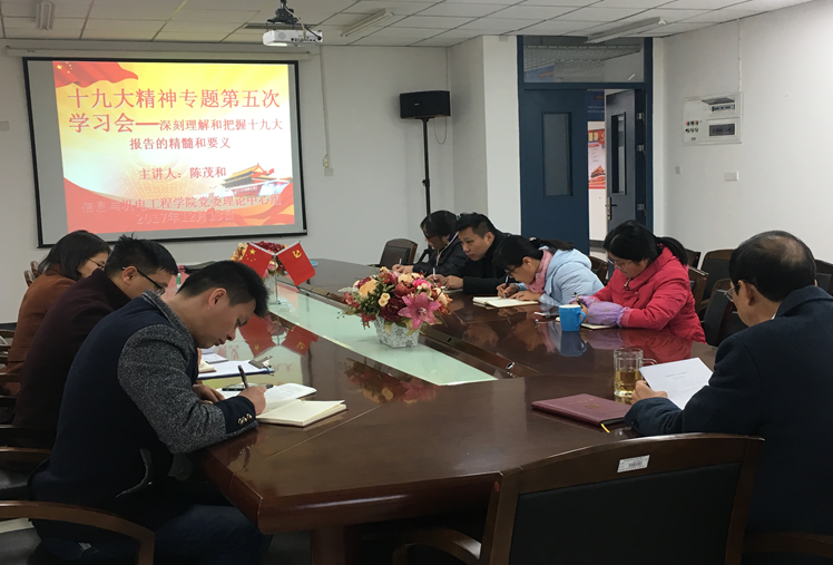 陈茂和书记的讲解深入浅出,为大家深刻理解和把握十九大精神的精髓和要义具有很大的启发和帮助。与会人员专注认真听取讲解,不停边听边记,收获很大。最后陈茂和书记结合信息与pa娱乐游戏发展现状指出,在迎来实现中华民族伟大复兴的光明前景下,我们要与时俱进、踏实工作,做出更大的成绩;要把眼前工作和使命意识结合起来,有方向才有干劲;要学习中国共产党的担当精神,从组织到个人都要增强政治意识、大局意识、核心意识和看齐意识。