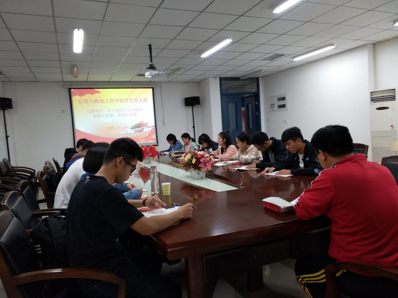 为进一步统一思想、凝聚共识,教育引导信息与pa娱乐游戏机电系员工党支部全体党员不忘初心、牢记使命,把十九大精神转化为强大动力。2017年11月14日下午,机电系员工党支部全体师生党员在求是楼DA408会议室参加了“学习党的十九大精神,凝聚正能量,促进大发展”主题党日活动。