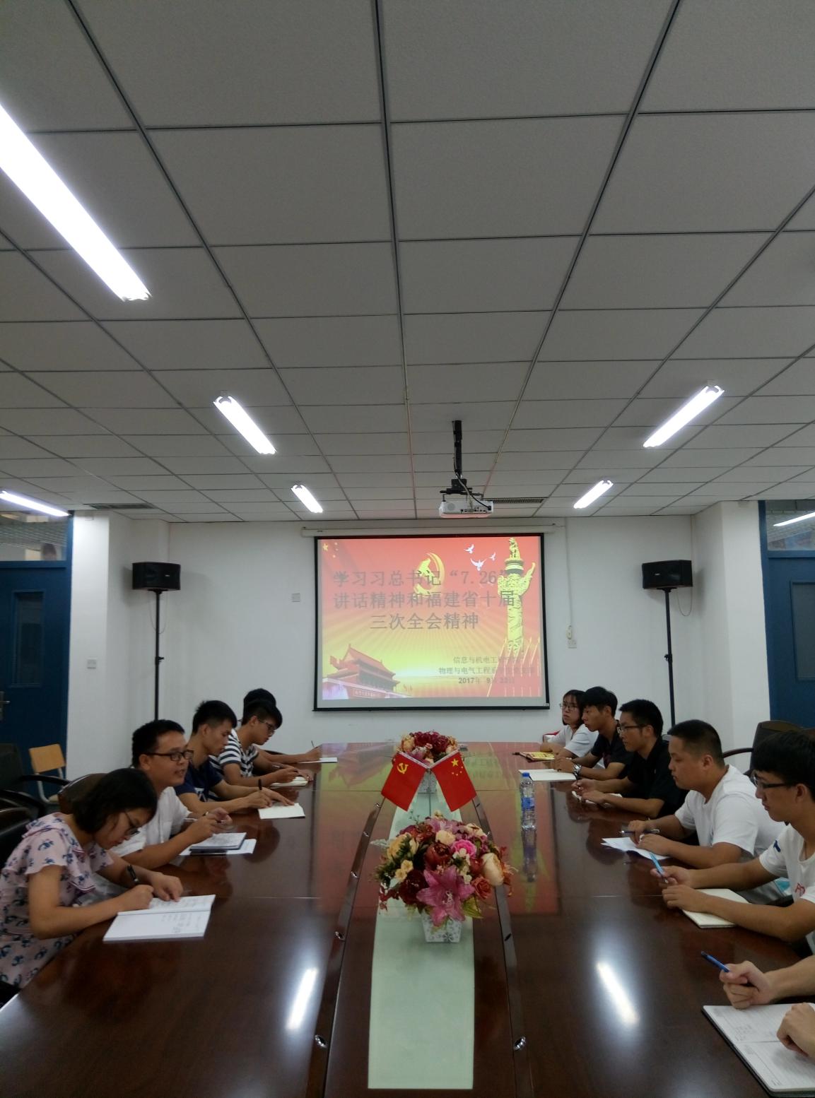 2017年9月23日,信息与pa娱乐游戏机电系员工党支部全体党在DA408教室召开学习习近平总书记2017年7月26日讲话精神和十届三会精神主题党日活动,本次会议由员工党支部书记卓敏主持召开。