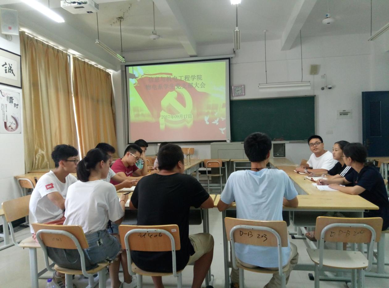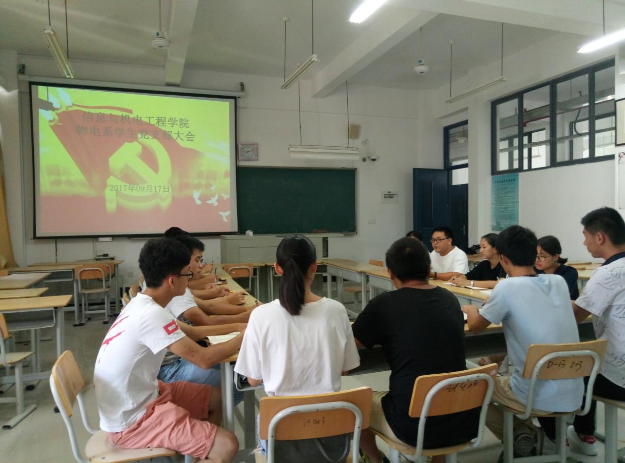 2017年9月17日下午,信息与pa娱乐游戏物理程系员工党支部全体党员在DB407教室召开会议,本次会议由员工党支部书记卓敏主持召开。会议上卓敏老师指出员工党员必须要树立起带好头的作用,不管是在学习上还是在生活上都要给周围的同学树立好榜样。要不断提升自身的党性修养,更好的发挥党员先锋模范作用。