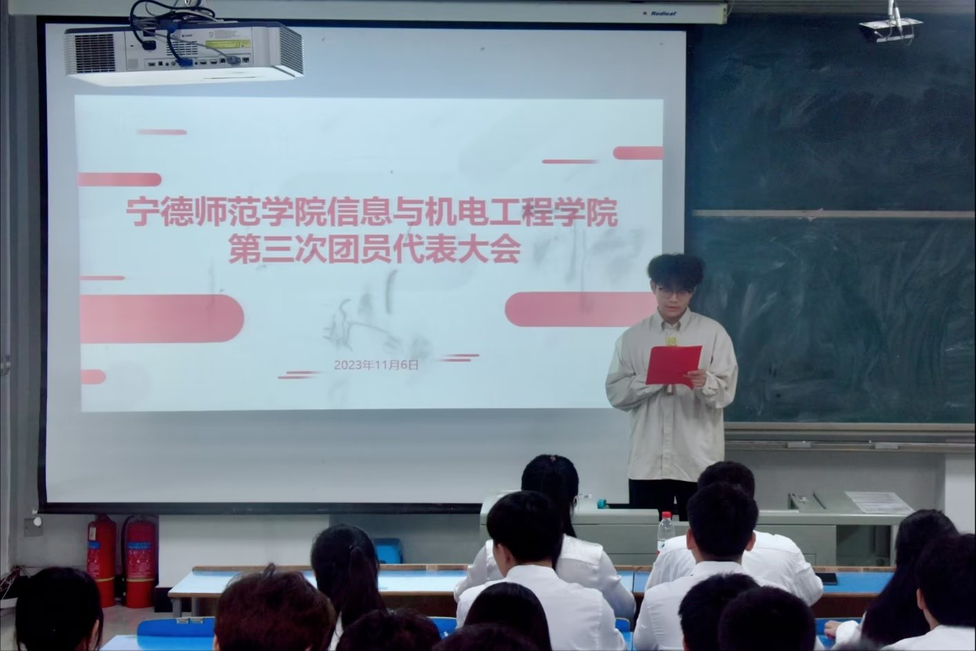 为全面深入贯彻党的二十大精神和共青团第十九次全国代表大会精神,进一步发挥好员工组织的桥梁纽带作用,汇聚青春智慧,点燃青春活力,公司于2023年11月6日19时在求是楼DB201召开第三次团员代表大会。院团委书记王佳佳老师、辅导员陈上鑫老师莅临现场,公司各班共76名团员代表参与会议。