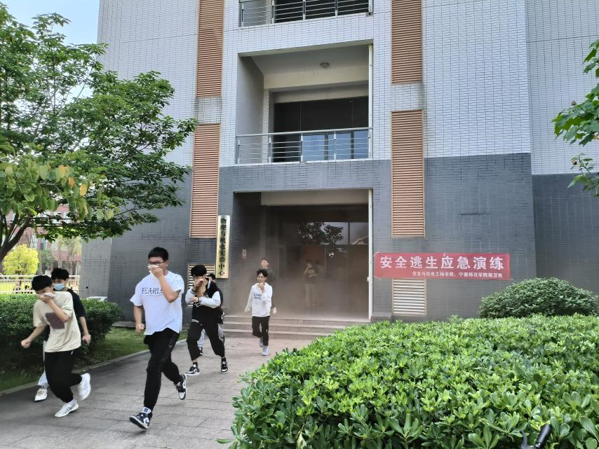 14:30分,工作人员在楼内释放烟雾弹并且拉响警报,员工在各层指导教师指引下下,有序进行火灾应急疏散演练,各楼层员工安全抵达求索大道空旷区域,演练完毕后,保卫处工作人员为员工普及防灾减灾知识。本次消防安全逃生应急演练从警报响起到全体参演人员全部达到指定地点大约用时2.8分钟。