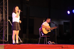 晚会在四位主持人的介绍下顺利开展;首先由名为《忆青春》的弹唱演奏开展序幕,歌曲《和你一样》伴随着清纯嘹亮的女声缓缓唱出,让人浮现出在pa娱乐游戏官网师生欢乐,和谐的日常。吉他的弦音温和恰到好处,更是衬托了氛围,让人心头一暖。