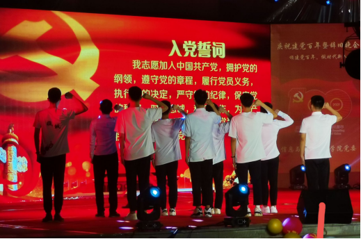 晚会的压轴,公司陈茂和书记带领2021届毕业生党员代表重温入党誓词仪式,每个党员回想起当年在党旗下曾经让自己热血沸腾的誓言,就是这短短八十字,感召我们努力实践,自觉奉献,激励着自己不断进取,奋斗终生。它更警醒着每一位共产党员与时俱进,恪守承诺,让正者更正,歪者纠偏板正,迷路者速返,警钟长鸣。