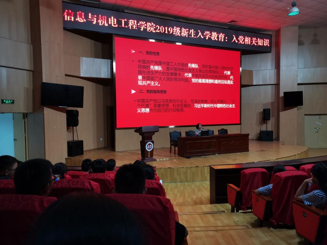 9月16日晚,信息与pa娱乐游戏第一党支部林幼仙老师和第二党支部王昌雷老师在图书馆报告厅为2019级新生开展了入党教育专题讲座,有约260名各班新生到场聆听此次讲座。