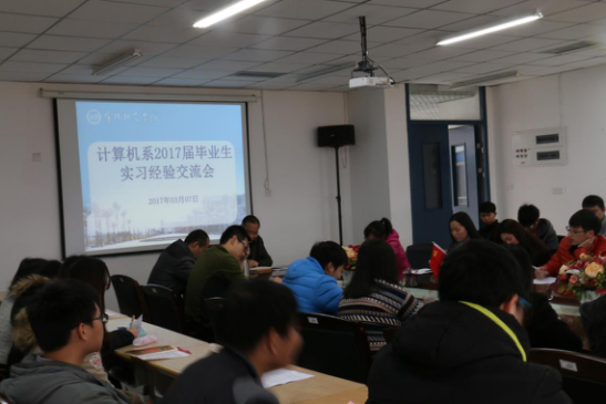 2017年3月7日我系在求是楼A408会议室召开2017届毕业生实习经验交流会。出席会议的有系副主任章立亮老师、杨烈君老师、李志亮老师、王秋菊老师以及20多位毕业生代表。