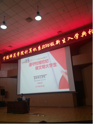 9月7日下午2点30分,我系在图书馆报告厅隆重举行2016级新生开学典礼暨专业教育。系主任张廷政教授、系党总支书记郑立文教授、副主任章立亮教授、李豫颖教授、团委书记傅亮老师、杨烈君老师及各新生辅导员等出席了新生入学典礼,典礼由系党务秘书张枝令副教授主持。