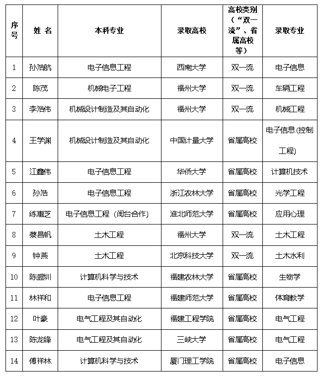 信息与机电工程公司2022届本科毕业生考研录取名单