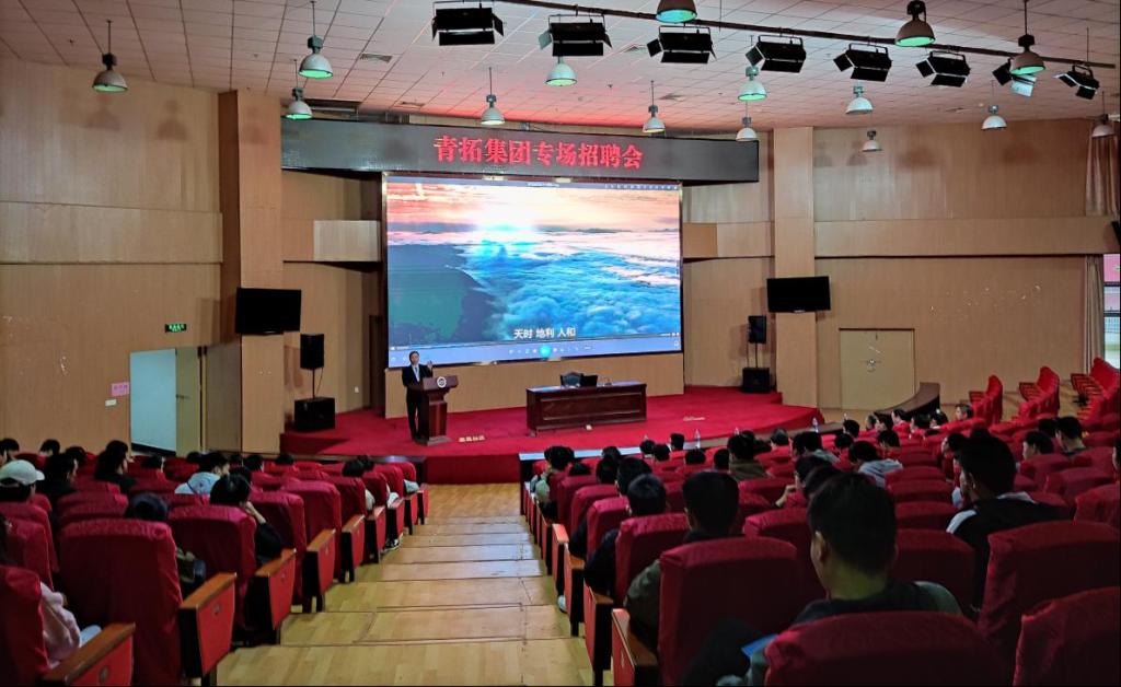 刘永清部长代表青拓集团致辞。他介绍青拓集团的发展历程,总结了自己在青拓集团工作的经历,强调了青拓集团是施展才华的舞台,是青年学子学以致、快速成长的平台,他着重介绍了本次招聘的人才岗位和新入职员工的培养方案,并衷心邀请宁师学子加入青拓集团的大家庭。