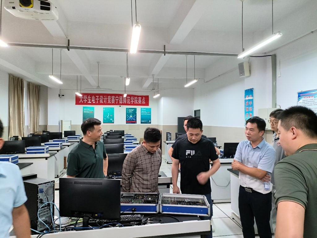随后,青拓集团镍业公司李总经理、周部长等企业领导,参观、考察了公司机械工程专业、电气工程专业的实验室和实训基地,赖联锋经理陪同参观,并详细介绍了机电类实验、实训开设的内容以及专业技能考核的方式方法等。
