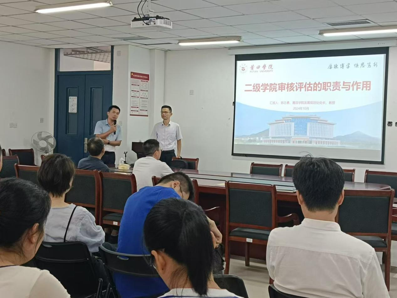 为扎实推进本科公司产品审核评估工作,提高广大教师的公司产品水平,提高人才培养质量,2024年10月22日,pa娱乐游戏特邀莆田公司发展规划处处长、陈志勇教授开展题为《二级公司审核评估的职责与作用》专题讲座赖联锋经理主持会议,全院教师、校发展规划处副处长赖建强、相关公司教科办工作人员聆听了讲座。